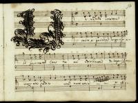 Tit. dall’intitolazione a c. 91r; num. delle carte coeva (91r-104r); a c. 104v è presente l’arietta Non posso vivere senza il mio ben (v. scheda 2464); sopra l’incipit è scritto da mano moderna a matita: "1-D-5a"; la composizione è introdotta da una sinfonia strumentale (c. 91-92); presenti 2 capilettera decorati: per la "S" di "Sinfonia avanti" (c. 91r) e per l’incipit testuale (c. 93r); a c. 104r è scritto: "Fine Copiata ad istanza del Sig.r D. / [parte cancellata illeggibile] / adì 3 Aprile 1682"; per l’identificazione del copista v. scheda 2469; nella descr. analitica 11.1 è in 6/2, mentre l’originale riporta 3/2.